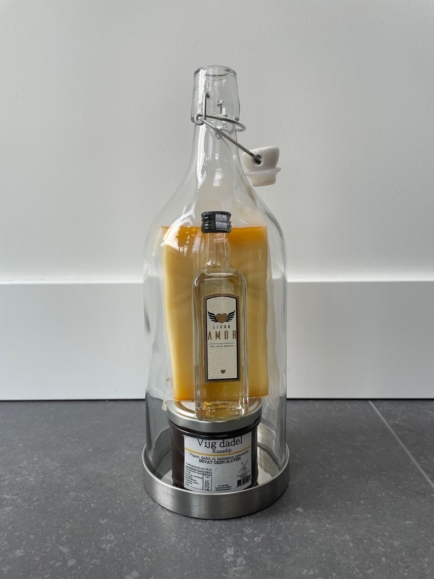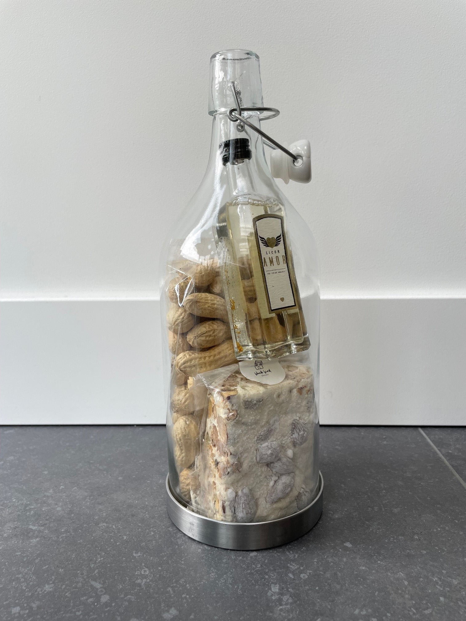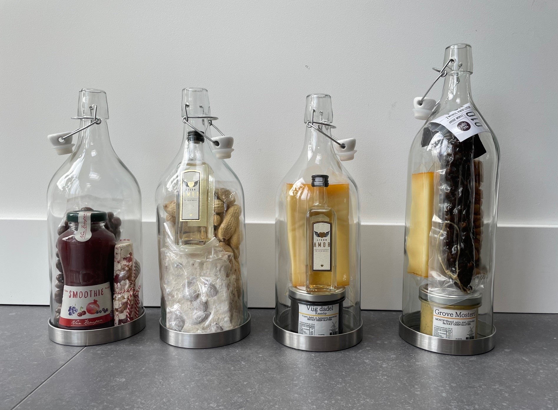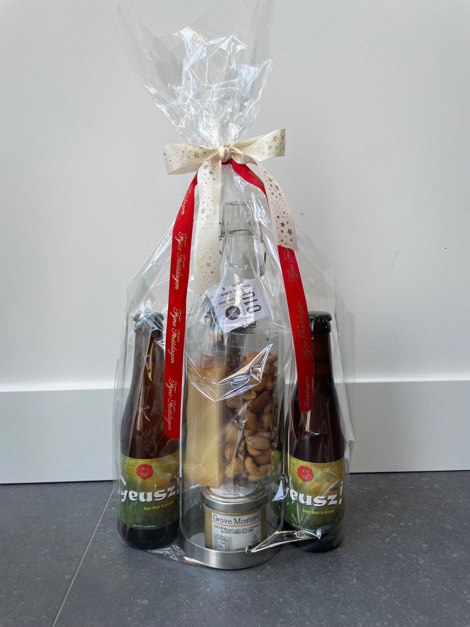 Voor de zoetekauw of de hartige versnapering. We hebben aan alles geprobeerd te denken. De flessen worden in een scheurvaste plastic hoes feestelijk verpakt zodat je dit direct kunt geven als cadeau.